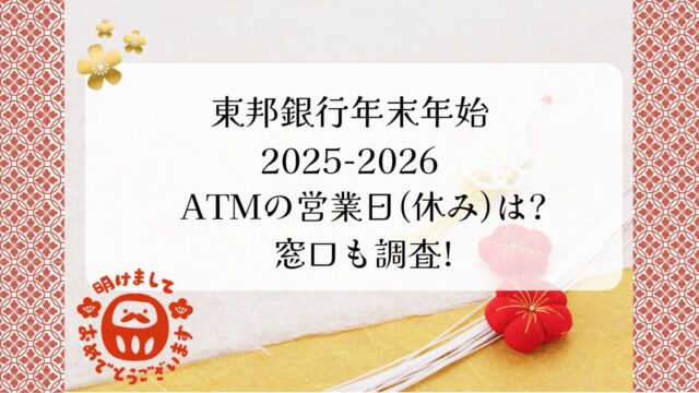 東邦銀行年末年始2025-2026のATMの営業日(休み)は?窓口も調査!