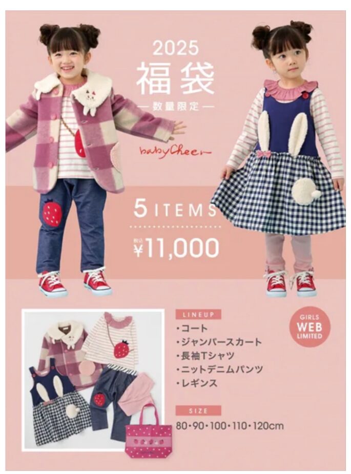 ベイビーチアー福袋2026のサイズは80cmから120cmまでの5サイズ展開です。