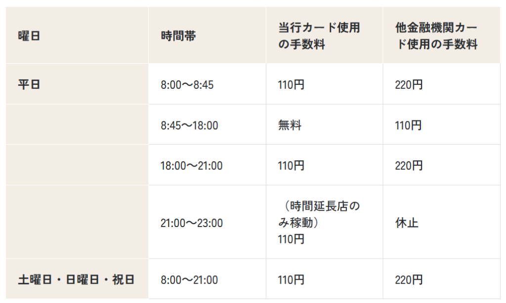 さらに、時間帯によってはこれにATMの利用手数料が上乗せされることもあります。
