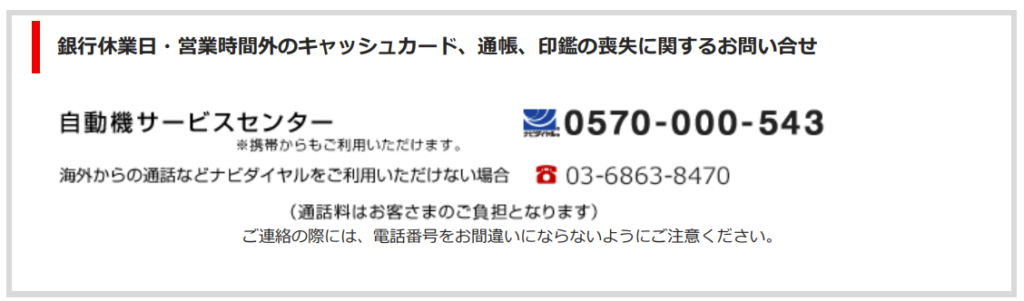 キャッシュカード・通帳を紛失した際の緊急連絡先