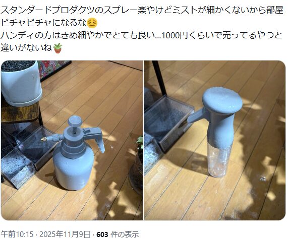 Instagramの投稿によると、スタンダードプロダクツっていうお店で売ってる「園芸用噴霧器」が代わりに使えるんですって。
