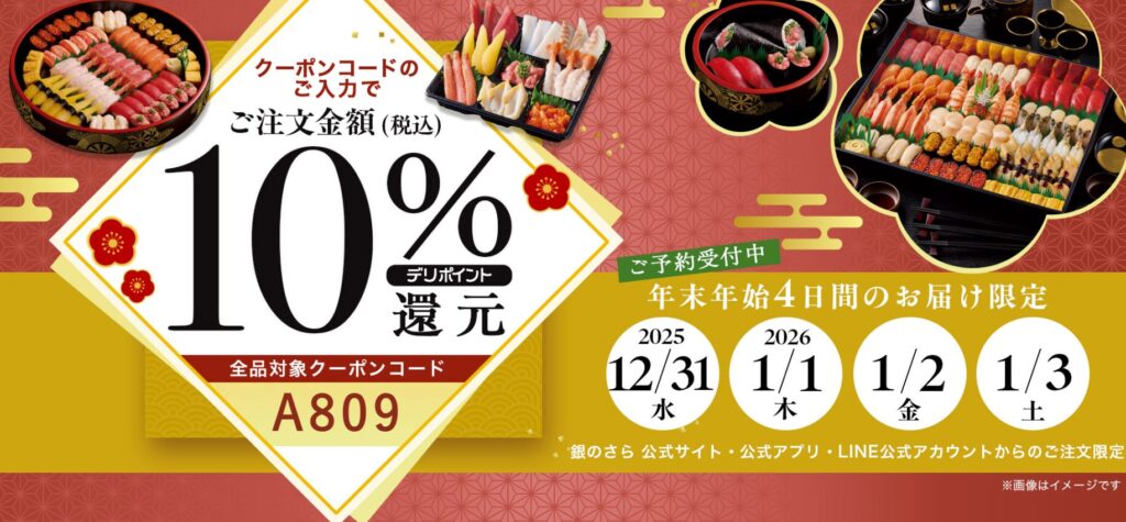年末年始にお寿司を頼もうとして、「よし、このクーポンを使おう!」と意気込んで入力したら、「この期間は利用できません」という冷酷なエラーメッセージ……。
