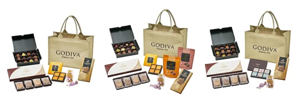 2026年のゴディバ福袋は、買う場所によって3つの種類が用意されています。