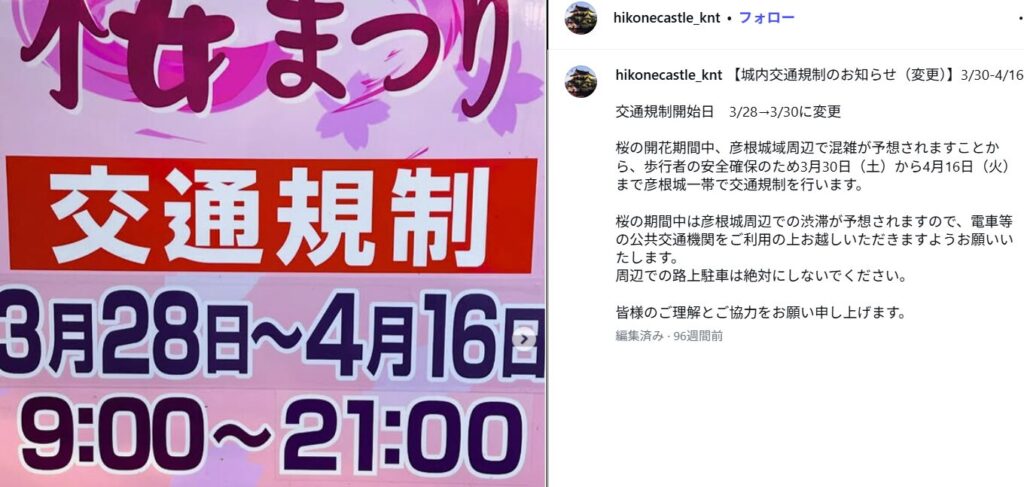 正直なところ、彦根城の桜は混雑も駐車場問題もあります。