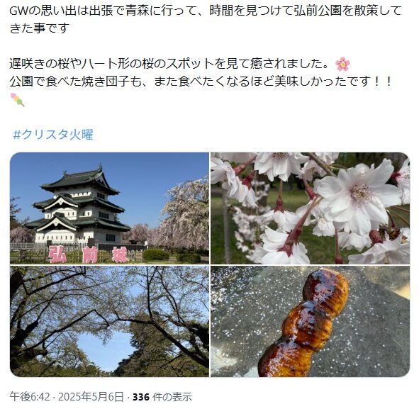 家族や友人とのお出かけを計画している方は、ぜひこの記事をチェックして、春の弘前を満喫してくださいね。