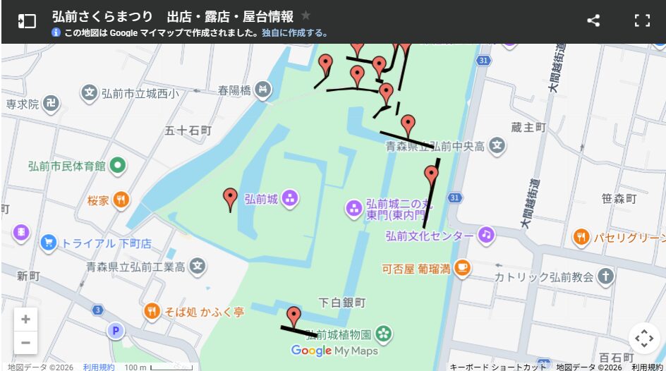 弘前公園の屋台は、園内のあちこちに点在しているんですが、特に多いのが追手門から本丸にかけてのエリア。