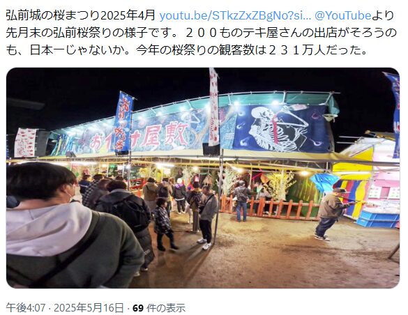 弘前桜祭り(弘前城)2026の屋台・出店のおすすめは?ライトアップも調査!