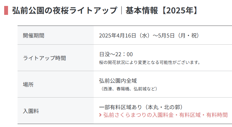 弘前桜祭り(弘前城)2026に関するよくある質問(FAQ)
