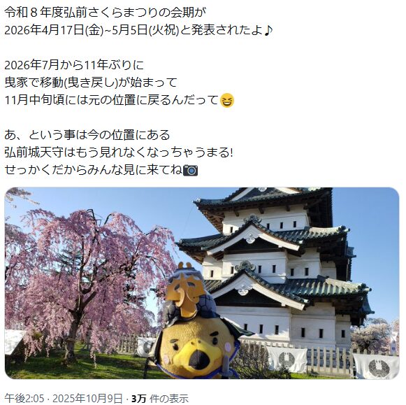 つまり、2026年の桜まつりは、天守が仮の位置にある最後の春ってこと!