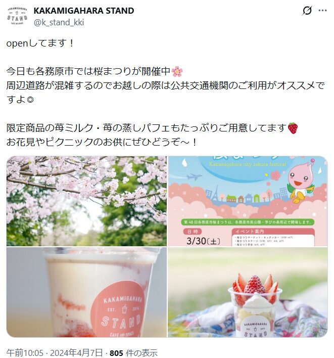 各務原市の公式情報を見ると、「桜を見ながらおいしい食べ物とイベントを楽しむ9日間」と書いてありました。
