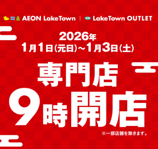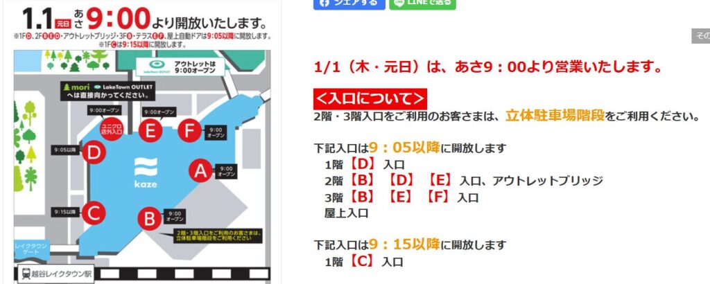 レイクタウン年末年始(正月)2025-2026の営業時間と営業日の詳細(kaze・mori・アウトレット別)