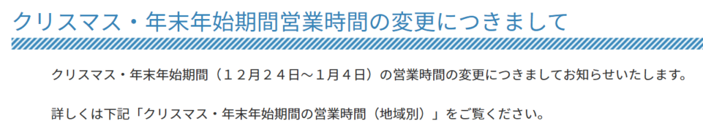 12月31日(大晦日):全店19時閉店!早めの行動が吉