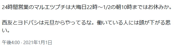 個人的には、「お正月くらい店員さんも休んでいいよね」って思うので、これはこれでいいんじゃないかなと。