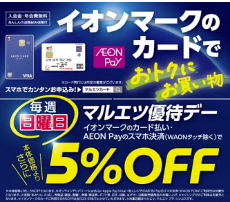 マルエツプチでは毎週日曜日が「マルエツ優待デー」で、マルエツカードなどイオンマークのカードで5%オフになるんです。