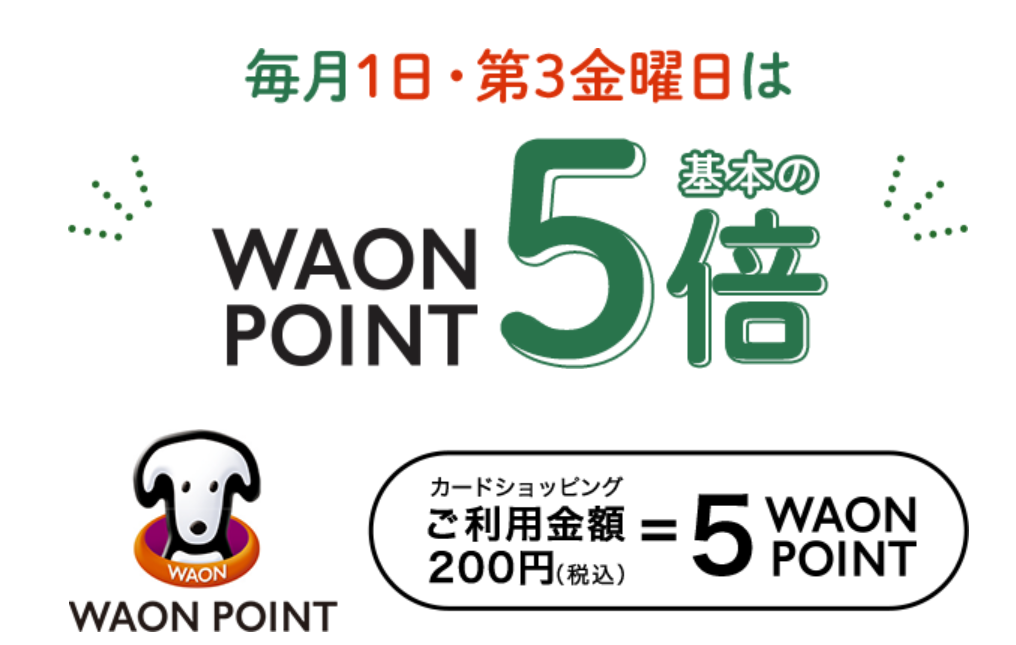 それから、毎月1日と第3金曜日は「WAON POINTデー」で、ポイントが基本の5倍付きます。