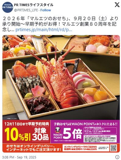 2026年のおせち予約は、例年の傾向から9月20日(土)から12月中旬まで受付されます。