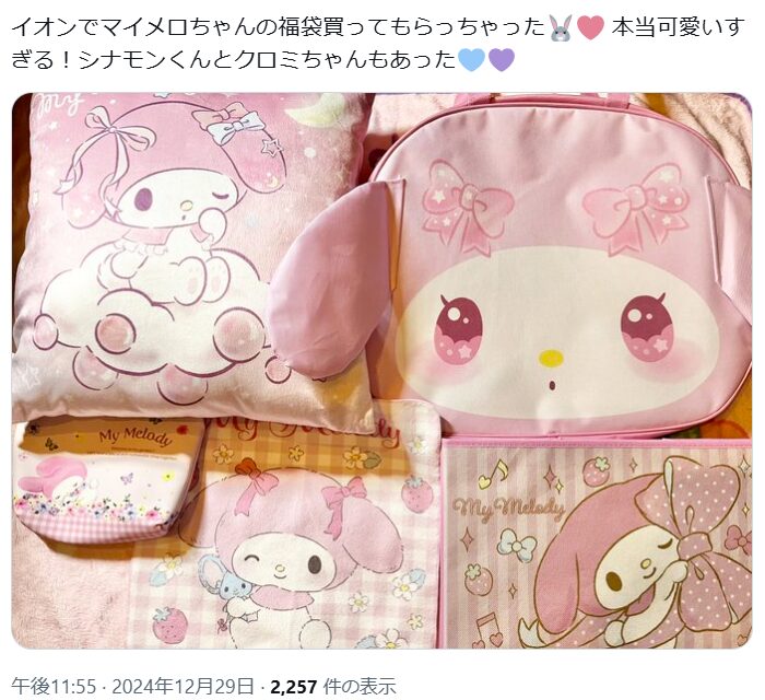 2025年にイオンで買ったマイメロディ福袋(5,500円)のことを今でも覚えています。