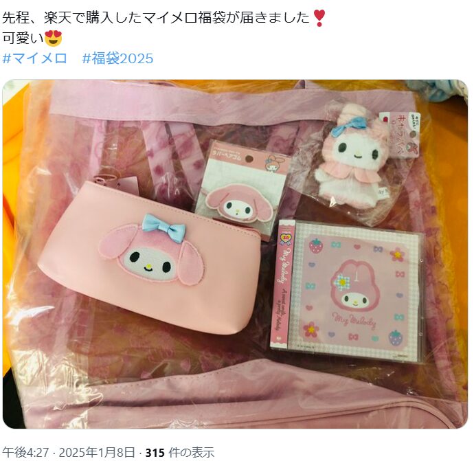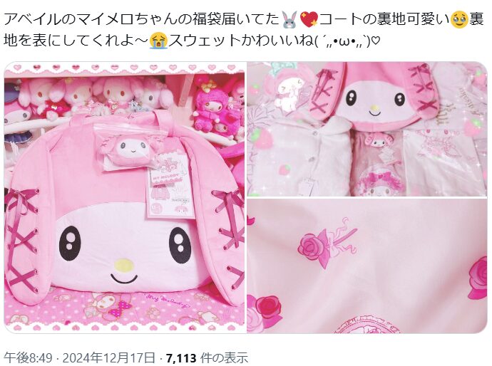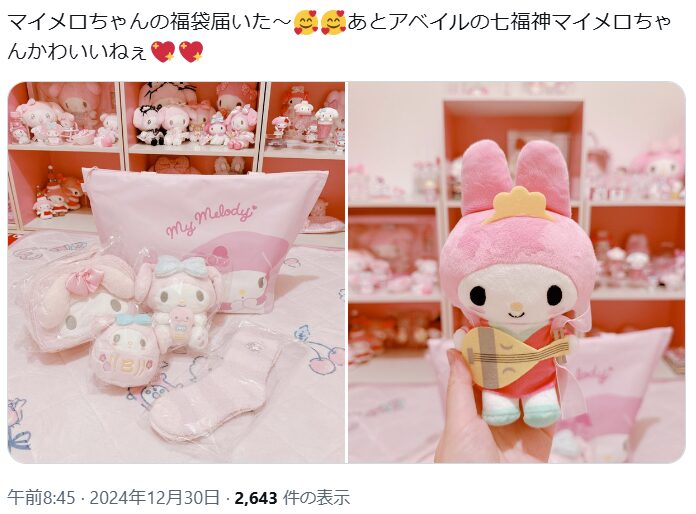 ちなみに、2025年の福袋は七福神マイメロちゃんが入った、とってもかわいい福袋だったんです!↓