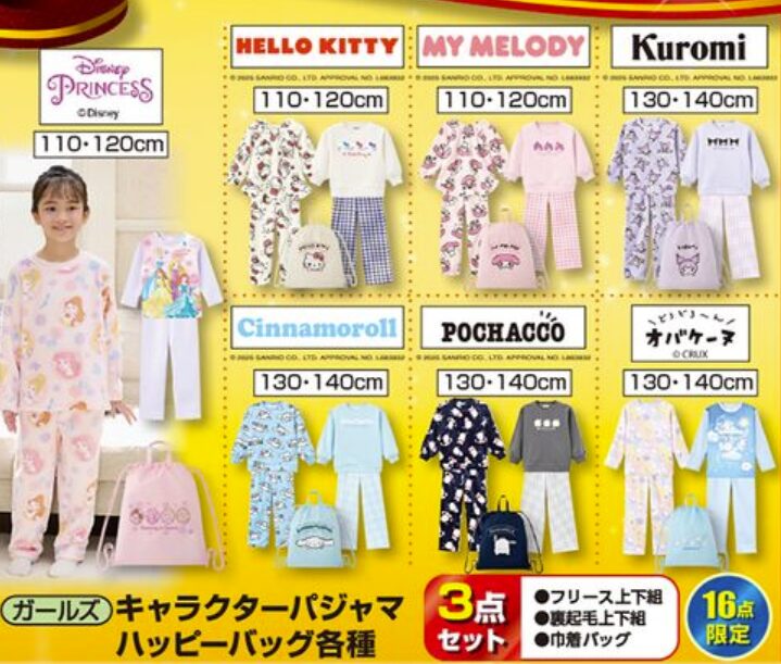 2025年に人気だったのは、マイメロディデザインのルームウェアセットとトレーナーが入った2,200円の福袋。