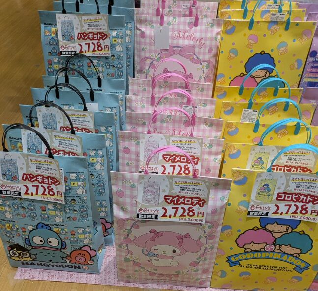 イオンの中にあるサンリオギフトゲートでは、毎年公式のサンリオ福袋が並びます。