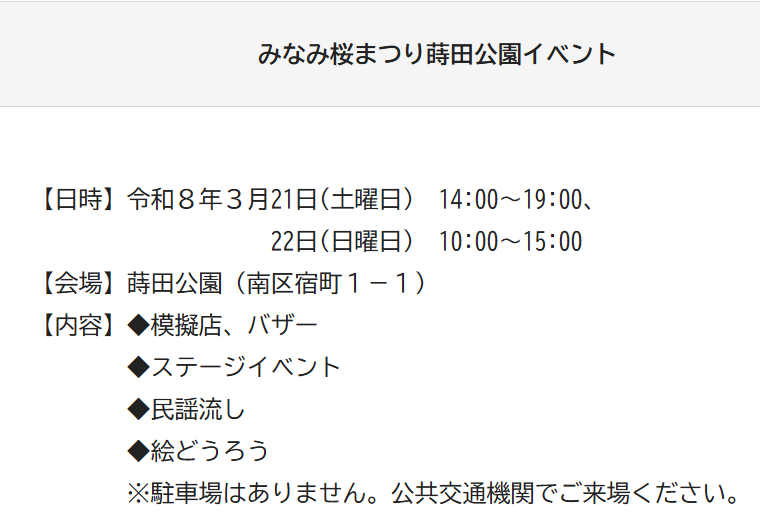 その一方で、蒔田公園の模擬店・バザーは3月21日(土)と22日(日)の2日間というのが確定情報として出ています。