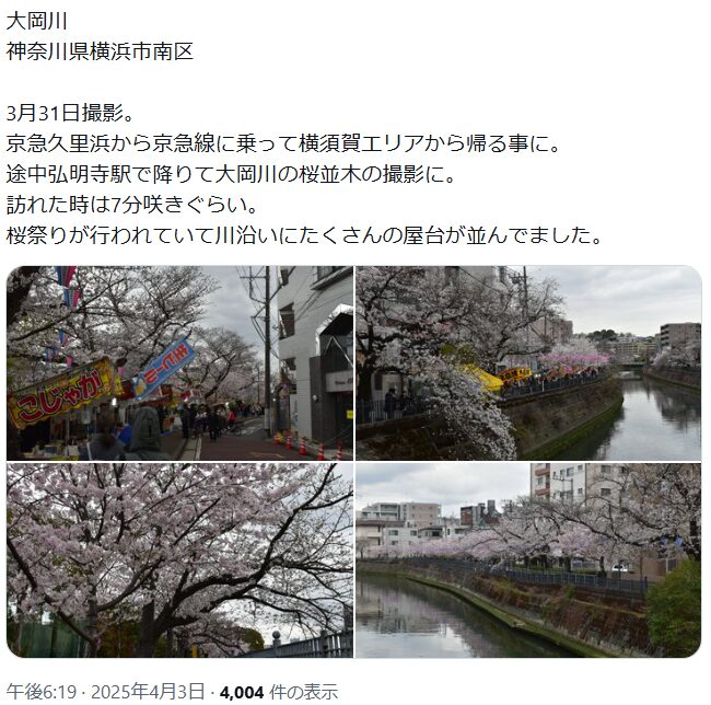 大岡川(弘明寺)桜祭り2026の屋台はいつからいつまで?混雑状況も!