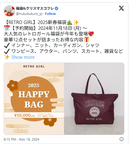 過去のレトロガール福袋の中身ネタバレ(2025年・2024年)