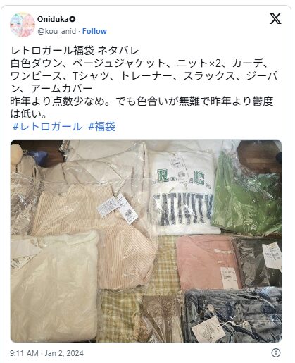 アウターが2点も入っていたことで、SNS上では「神福袋」「買ってよかった」との声が続出していました。