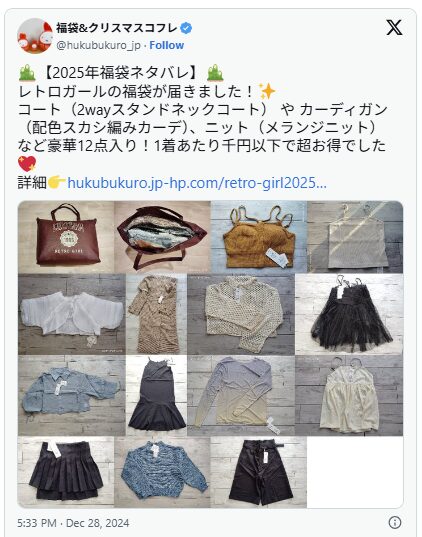 SNSでの評判をチェックしてみると、レトロガールの福袋は満足度が非常に高いことがはっきりと分かります。