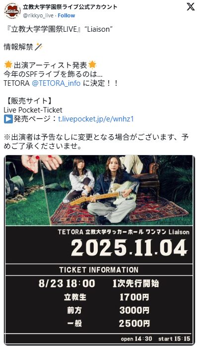 それでは早速、立教大学学園祭2025 ゲストや芸能人情報について見ていきましょう!
