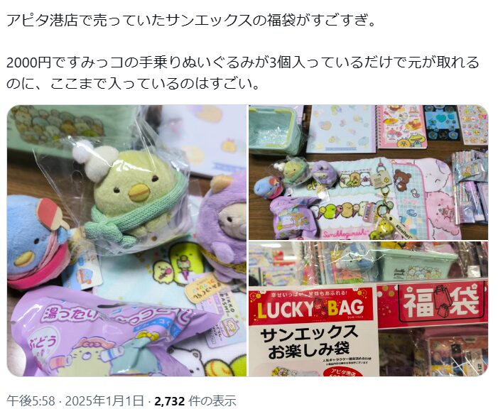 実際に、以前アピタですみっコぐらしの福袋が販売されたこともあり、SNSでは「アピタでゲットしたよ!」なんていう喜びの声で賑わいました。