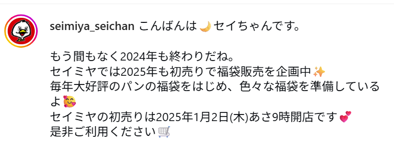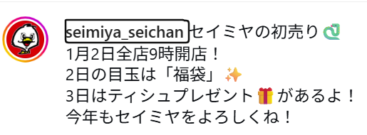 2025‐2026の年末年始も、セイミヤ全店舗で1月1日はお休みになることが発表されています。↓