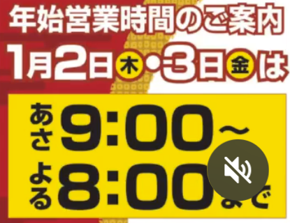 - 1月2日(木):初売り・朝9時開店、夜20時閉店(時短営業)