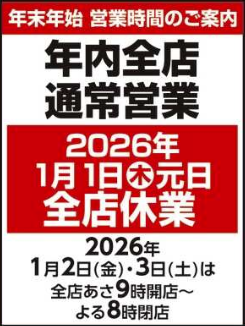 2026年年始の営業時間について