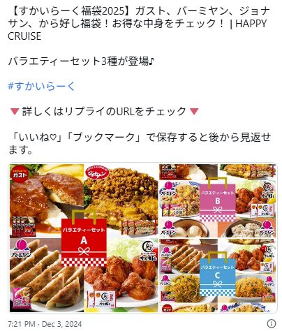 2025年版の実績から見ると、すかいらーくの福袋はオンライン販売がメインでした。