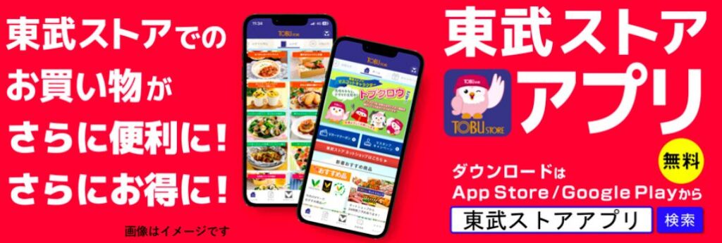 一番手軽なのは、東武ストアの公式アプリ