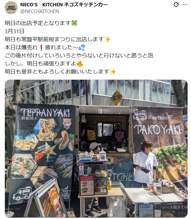 常盤平さくらまつりでも、過去にキッチンカーが来ていたという情報があります。