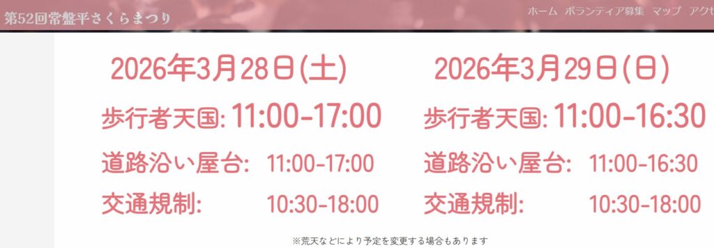 2026年の常盤平さくらまつりは、3月28日(土)と3月29日(日)の2日間で開催されます。