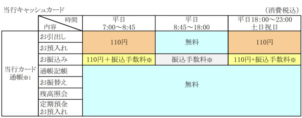 - 利用時間: 店舗やATMブースで違いますが、だいたい8:00〜21:00くらいまでが多いです