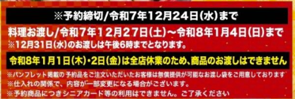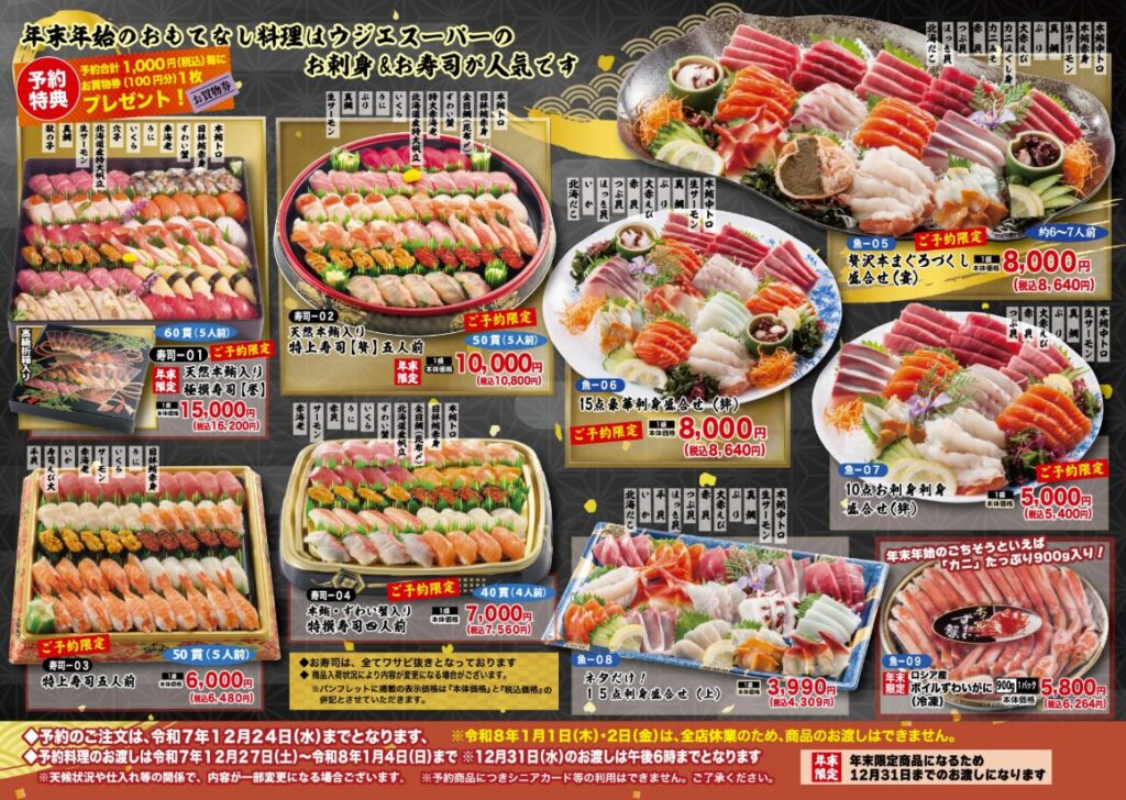 ウジエスーパー年末年始2025‐2026の予約について(寿司・オードブルなど)