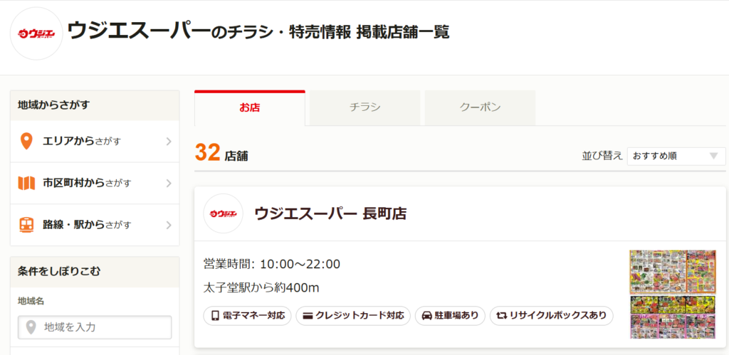 ウジエスーパーの公式サイトでは、各店舗の最新チラシが見られます。
