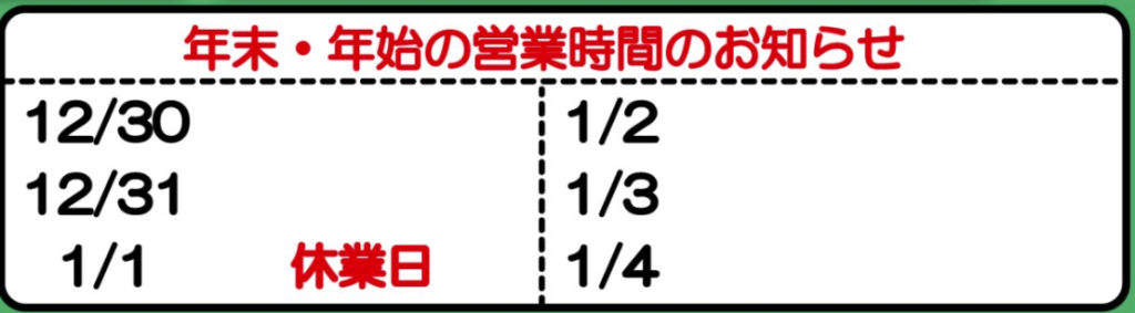 過去(2024-2025)の年末年始の営業スケジュールを参考