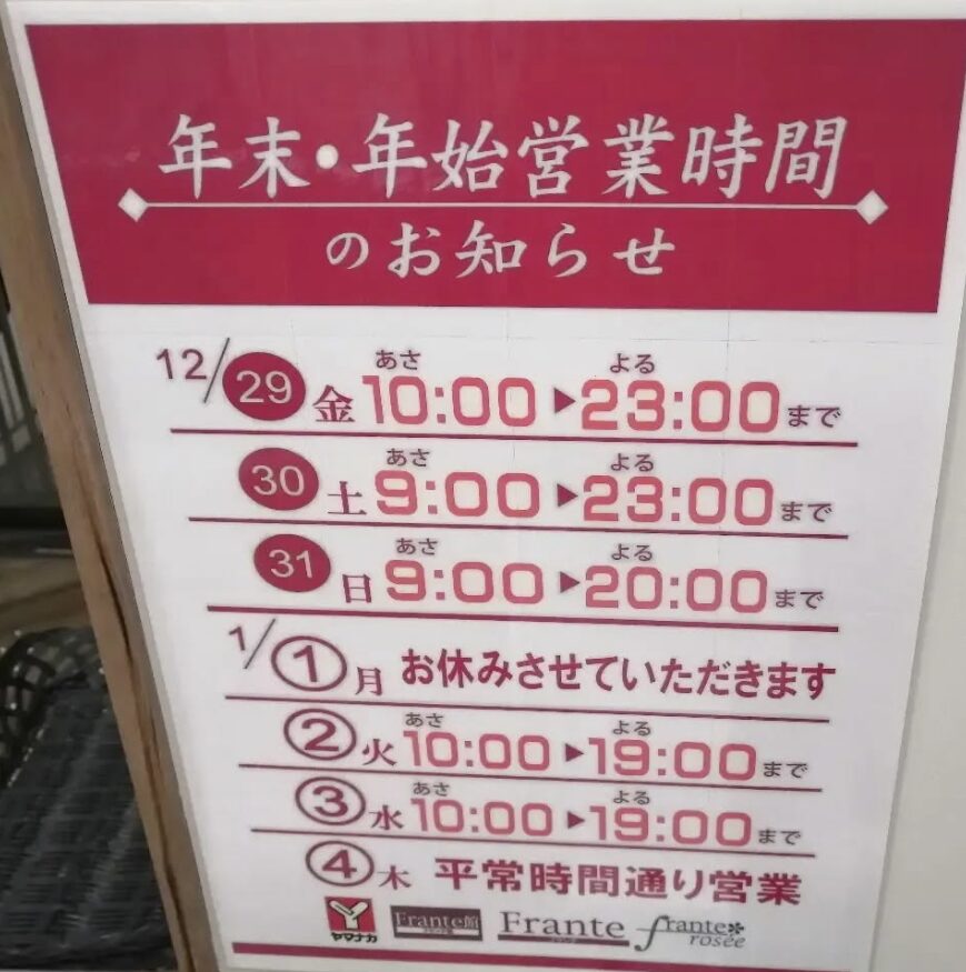 今回は、ヤマナカの2025年から2026年にかけての年末年始営業時間を徹底的にリサーチしてきました!