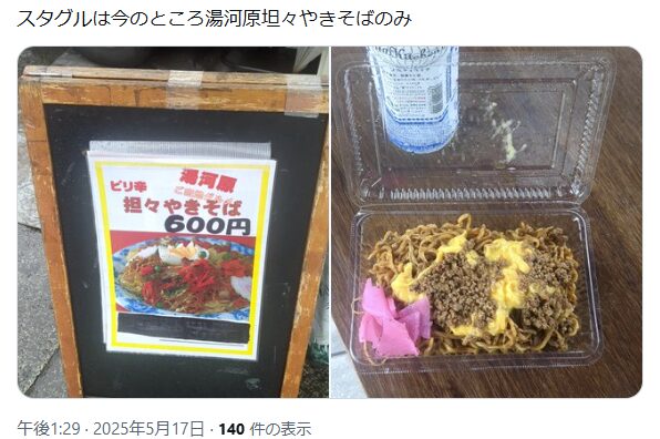 それから湯河原のB級グルメ「坦々やきそば」が出てることもあるらしいです。