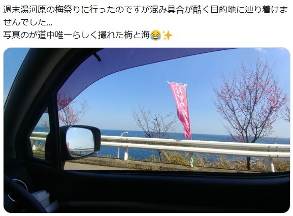 Twitterで「湯河原梅林 混雑」って検索すると、「今駐車場待ち30分」みたいなつぶやきが流れてきたり。こういう生の情報、ありがたいですよね。